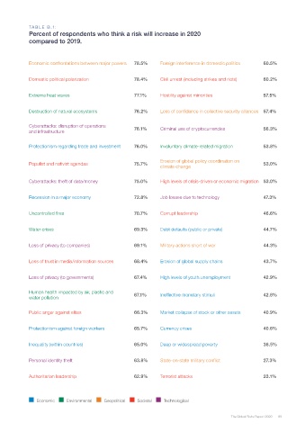 Cyberattacks: theft of data/money 75.0% High levels of crisis-driven or economic migration 53.0%
